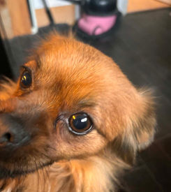 Minnie is a very sweet girl once she trusts you. She is better with women then she is with men, but with time and patience she will learn that you are here to love her. Minnie took about 2 days to allow me close and stroke her, now she knows a loving touch, she has zoomies and runs up to me every morning! Minnie is toilet trained on pads and outside. She ignores my cats and cuddles up with my other dog. It's only humans that she is unsure of at first.