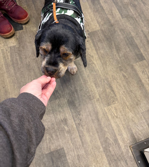 Rolo can live with other older calmer dogs, he is not cat tested and no children please.