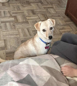 Tessie is such an adorable puppy. She is very friendly and loves company. She enjoys curling up on the chair with anyone who is happy for doggy cuddles. Tessie is very intelligent and keen to learn. She obeys the command sit and has started to respond to her name. Tessie is great with both adults and children. She settles well at night in her crate and is always happy to see you in the morning. She greets visitors with wagging tail and instantly ready for them to give her a stroke. She loves playing, throw her toy and she will go get it and on occasions will drop it at your feet to throw again.